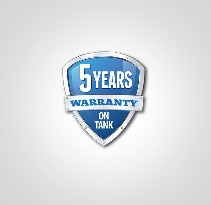 5 years tank warranty and 2 years on product.