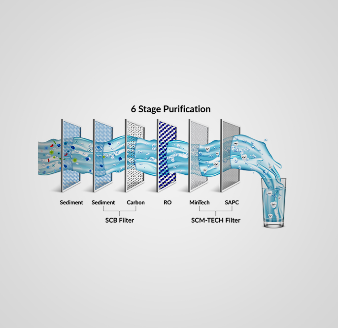 Clean and pure drinking water with SSM technology (SIDE STREAM RO MEMBRANE)- Suitable for water with low and high (upto 2000 ppm) TDS. Wastes less water and improves pure water recovery.