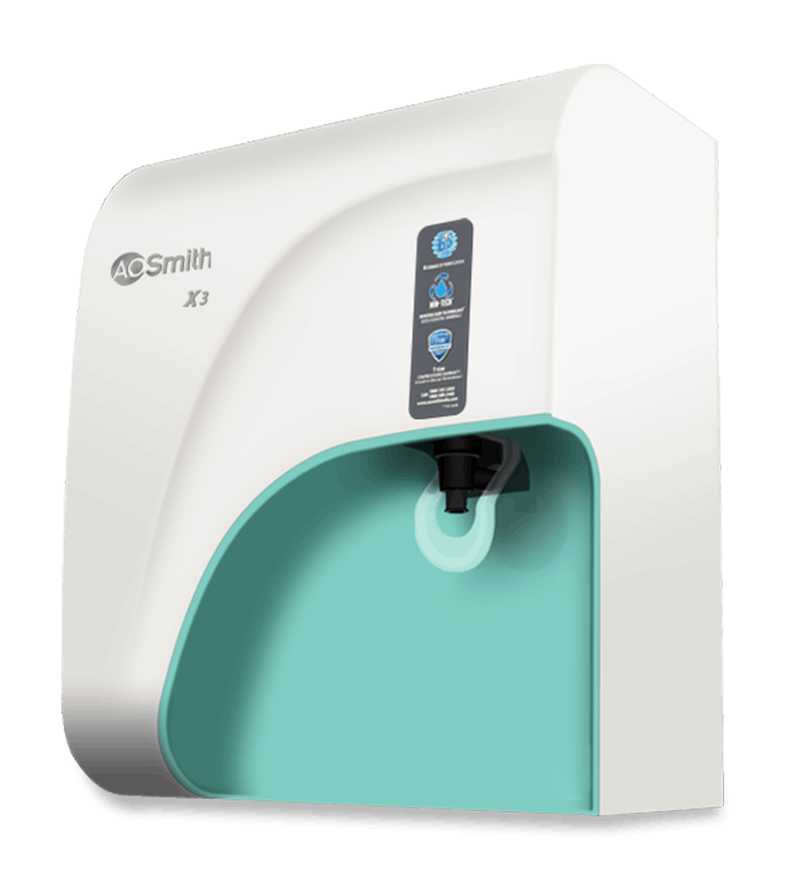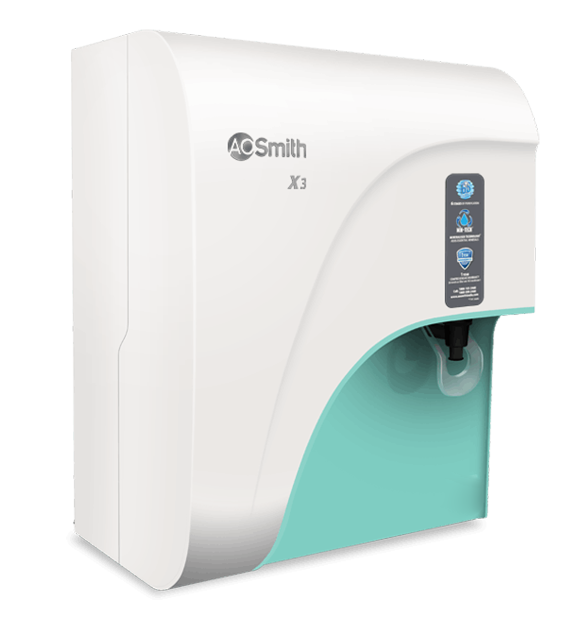 Healthy drinking water with 6-stage purification technology: Pre-filter + Sediment filter + Pre-Carbon filter + RO Membrane + SCM-TECH(Silver Activated Post Carbon) + MIN-TECH. In A.O. Smith X3, 100% of the water passes through the RO membrane, with no bypass of impurities.
