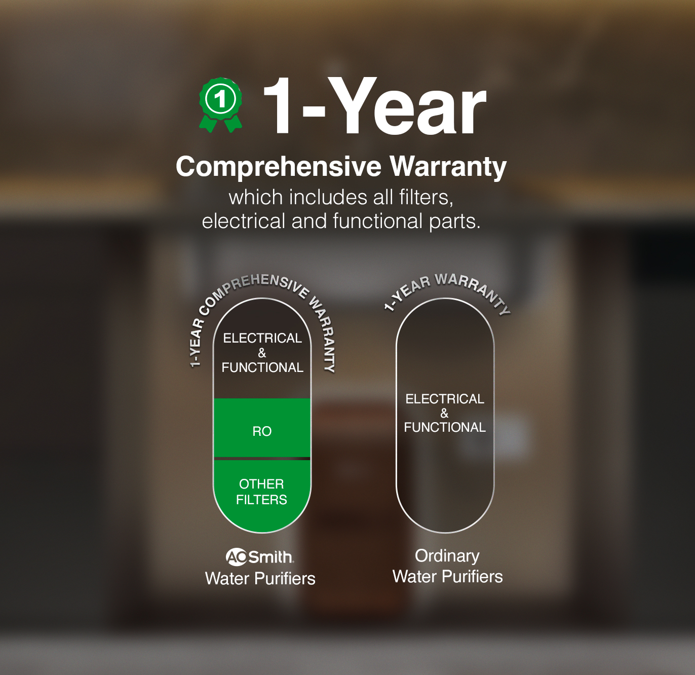 To ensure peace of mind , Z2 Pro Vogue (Midnight Black) comes with 1 year comprehensive warranty that covers all filters, RO Membrane and electrical parts. No hassle, no worries.