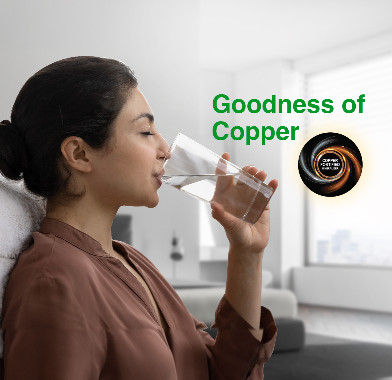 | • Purifier Type : | 100% RO (Reverse Osmosis) + Copper Fortified Mineralizer (CFM)+ Alkaline Technology |